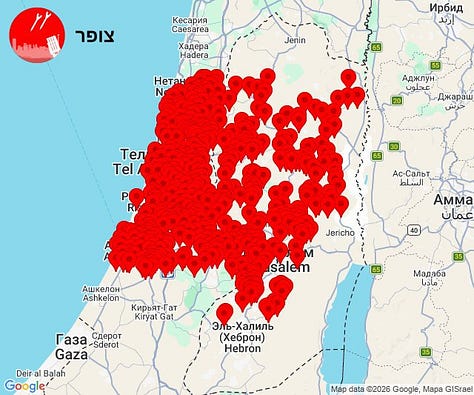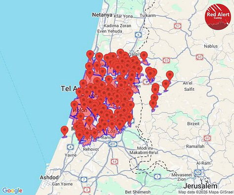 At the same time, air-raid sirens sounded continuously across the occupied Palestinian territories, with reports of explosions and direct hits as successive waves of Iranian ballistic missiles reached their targets.
