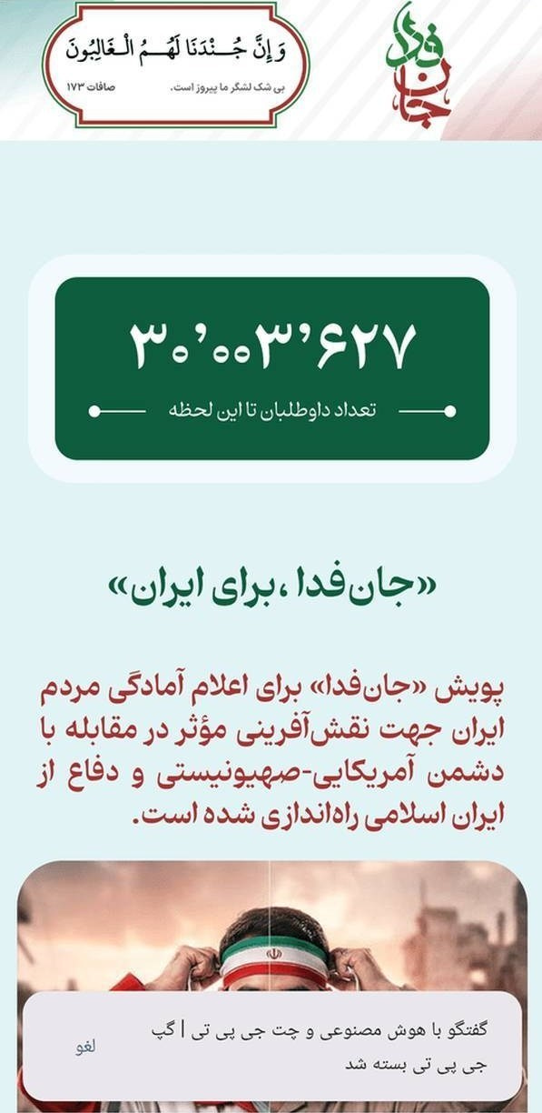 Separately, Tasnim reported that the “Janfada” (Devotion) campaign—launched earlier during the war to organize volunteer forces—has surpassed 30 million participants.