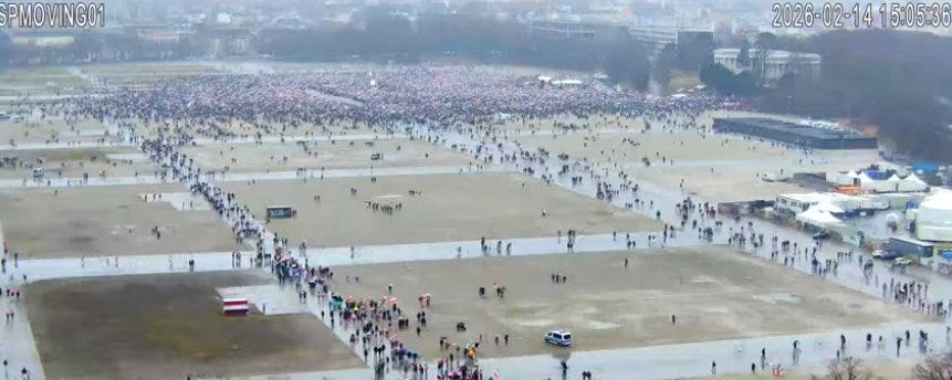 Observers quickly pointed out that a crowd numbering in the hundreds of thousands would have fully saturated the entire venue, which clearly did not occur.