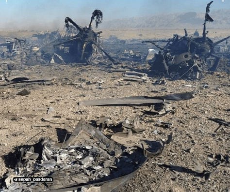 Republic World and TRT World published footage and images of destroyed American aircraft, citing Iranian sources that confirmed the destruction of two Black Hawks and a C-130 in southern Isfahan.