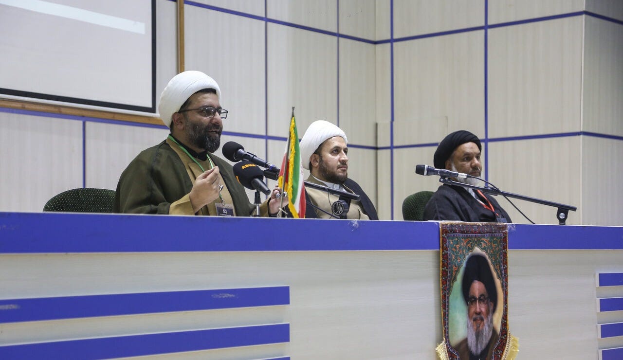 The second panel gathered seminary figures: Hojat al-Islam Sayed Aqa Ali-Reza, Sheikh Mostafa Araki, Sayed Shahryar Naqavi, and Sheikh Ali Qomi.
