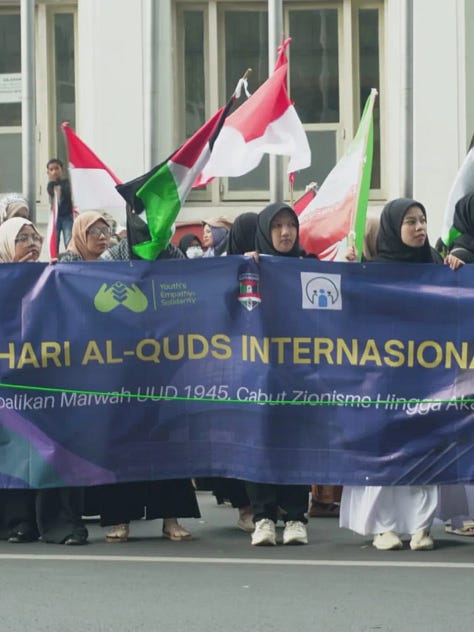 In addition to expressing solidarity with Palestine, International Quds Day rallies across Indonesia also voiced support for the Islamic Republic of Iran following the martyrdom of Ayatollah Sayyed Ali Khamenei.