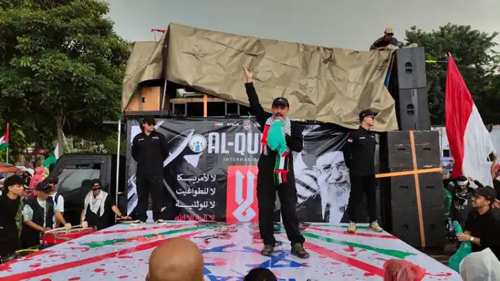 Solidarity rallies were held in major cities including Jakarta, Bandung, Semarang, Surabaya, Samarinda, and Pontianak. Participants carried Palestinian flags, resistance banners, and chanted slogans calling for the liberation of Al-Quds from Israeli occupation.