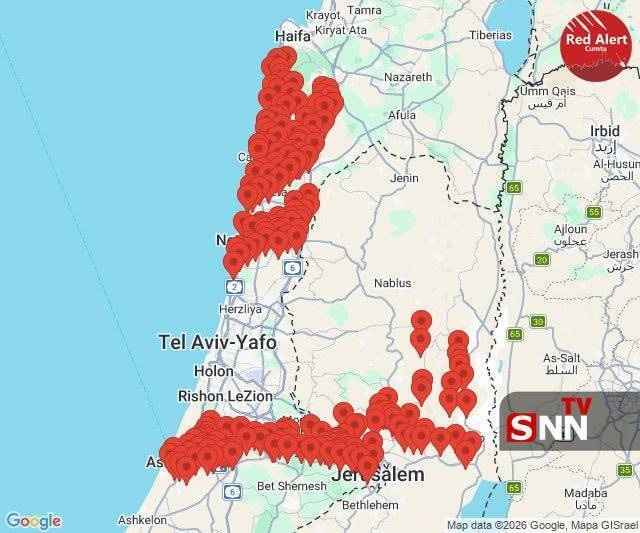 Reports confirm that from north to south, the occupied territories have been struck by Iranian missile barrages.