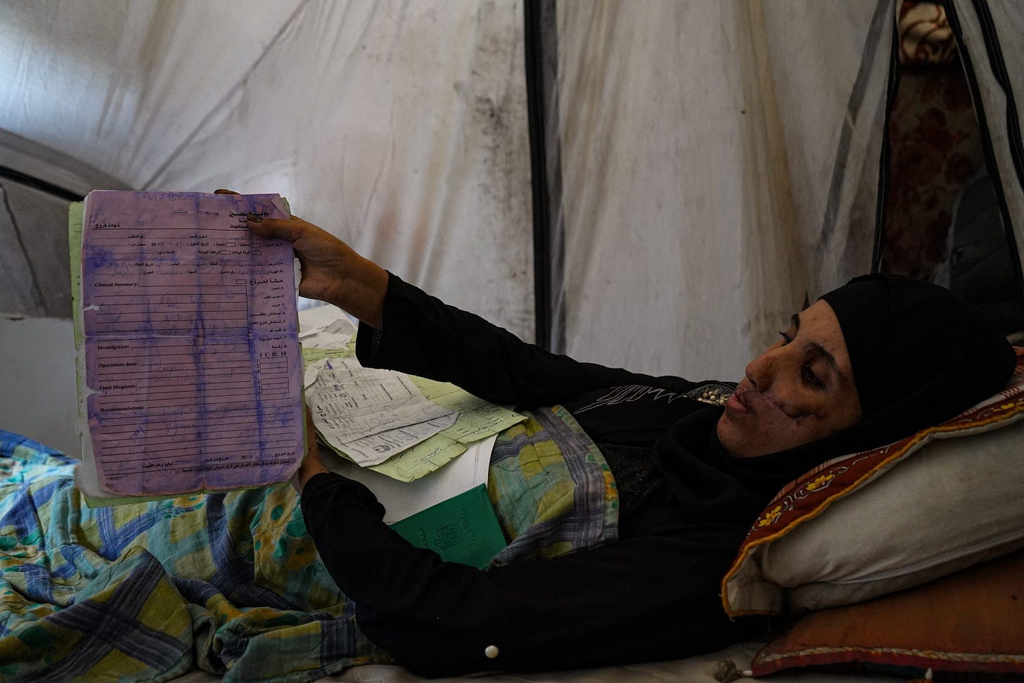 Doctors in Gaza have warned her that such a procedure is impossible inside the Strip due to the total absence of necessary medical equipment and surgical supplies, compounded by an extreme shortage of medicines and essential operating materials.