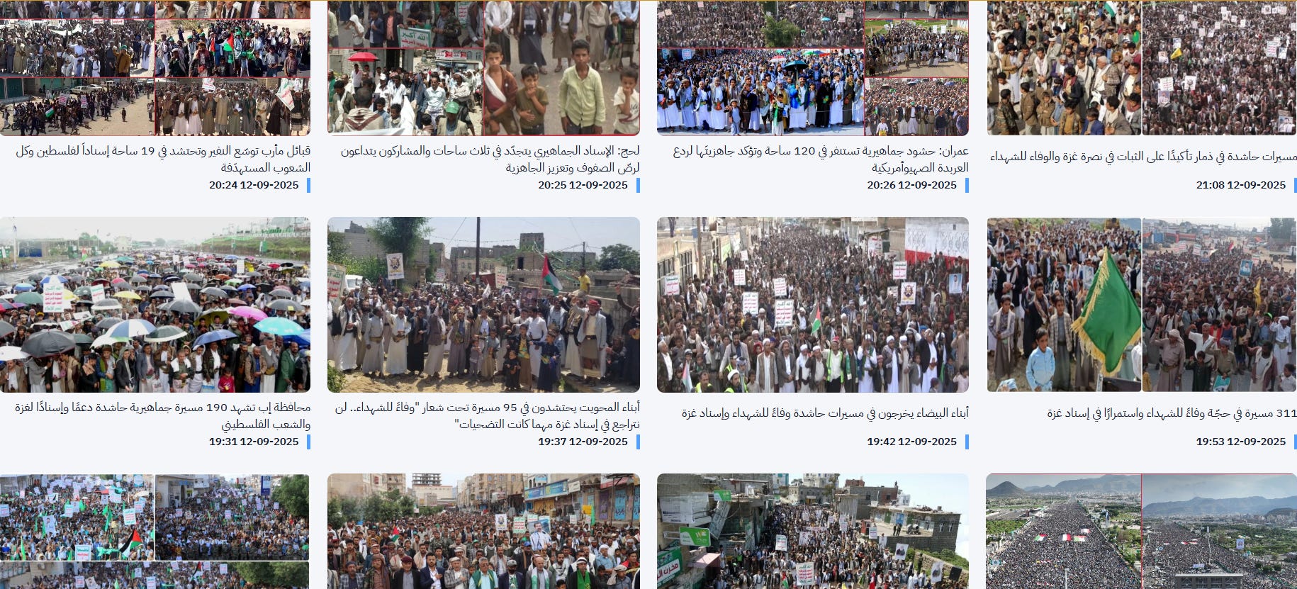 From Sana’a to dozens of other Yemeni cities, massive demonstrations reaffirm Yemen’s solidarity with Palestine, denounce Israeli attack in Doha, and highlight obedience to the call of Sayyed Houthi.