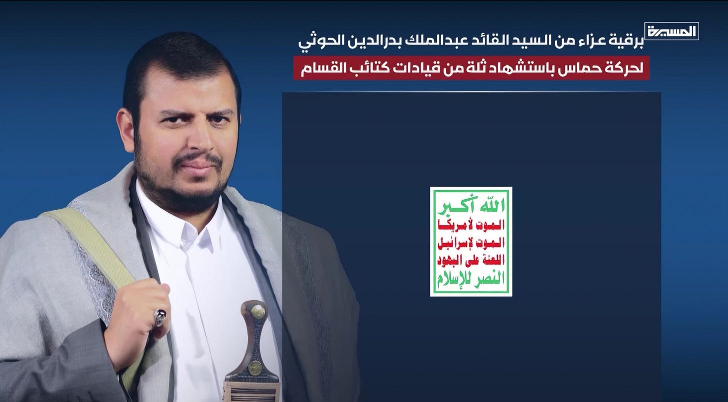 Yemen, PUREWILAYAH.COM — Sayyed Abdul-Malik al-Houthi, the Leader of Yemen’s Ansarullah Movement, has sent an official message of condolence and solidarity to the Izz ad-Din al-Qassam Brigades and the Hamas, following the martyrdom of senior resistance commanders who fell during the ongoing battle of Operation Al-Aqsa Flood.