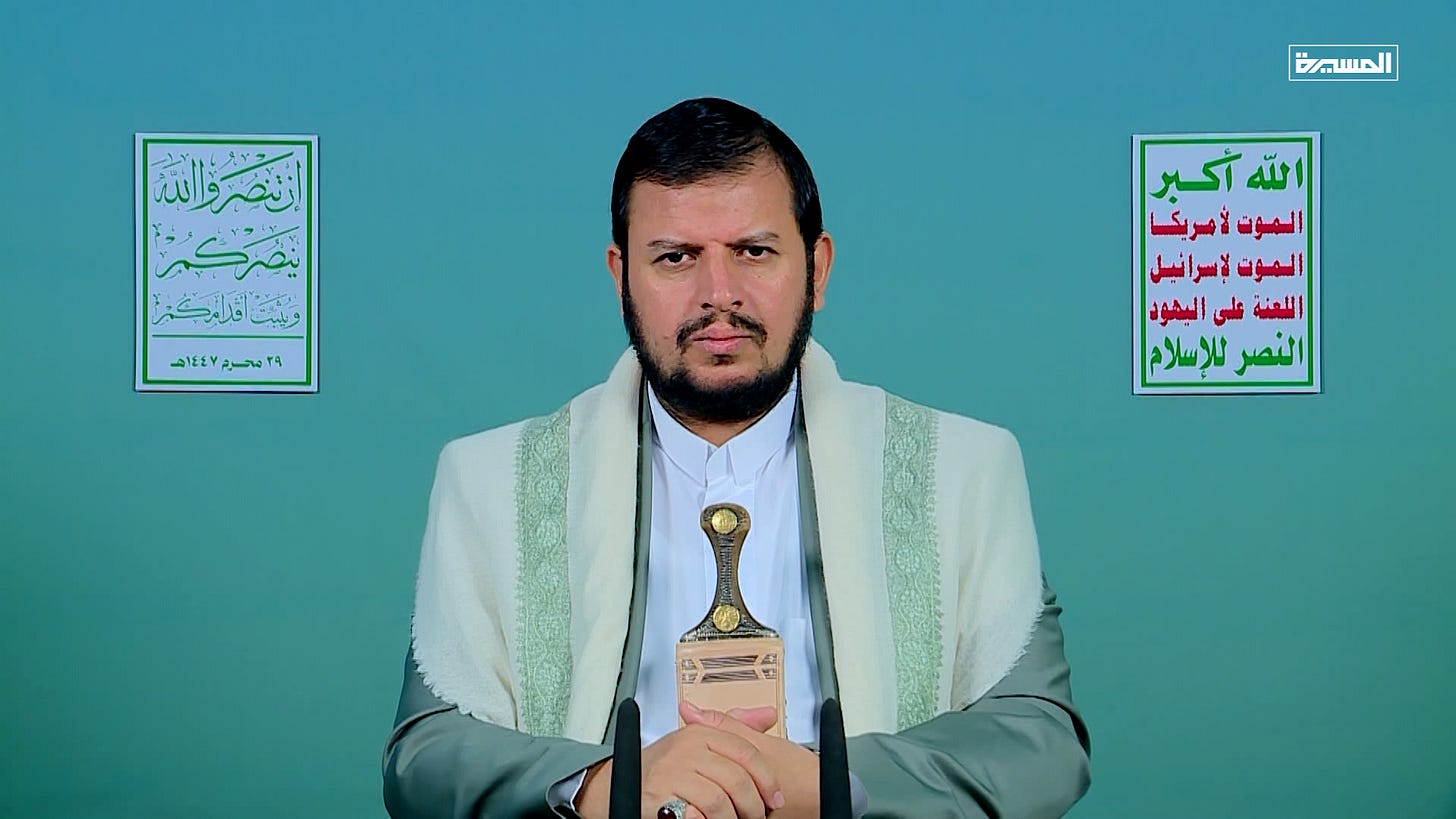 Sayyed al-Houthi launched scathing criticism against Arab regimes that maintain ties with the Zionist entity while pretending to care about the Palestinian cause.