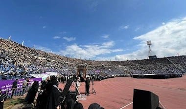 The massive assembly featured symbolic marching formations, national and resistance anthems, and renewed pledges of loyalty to the martyred leaders.